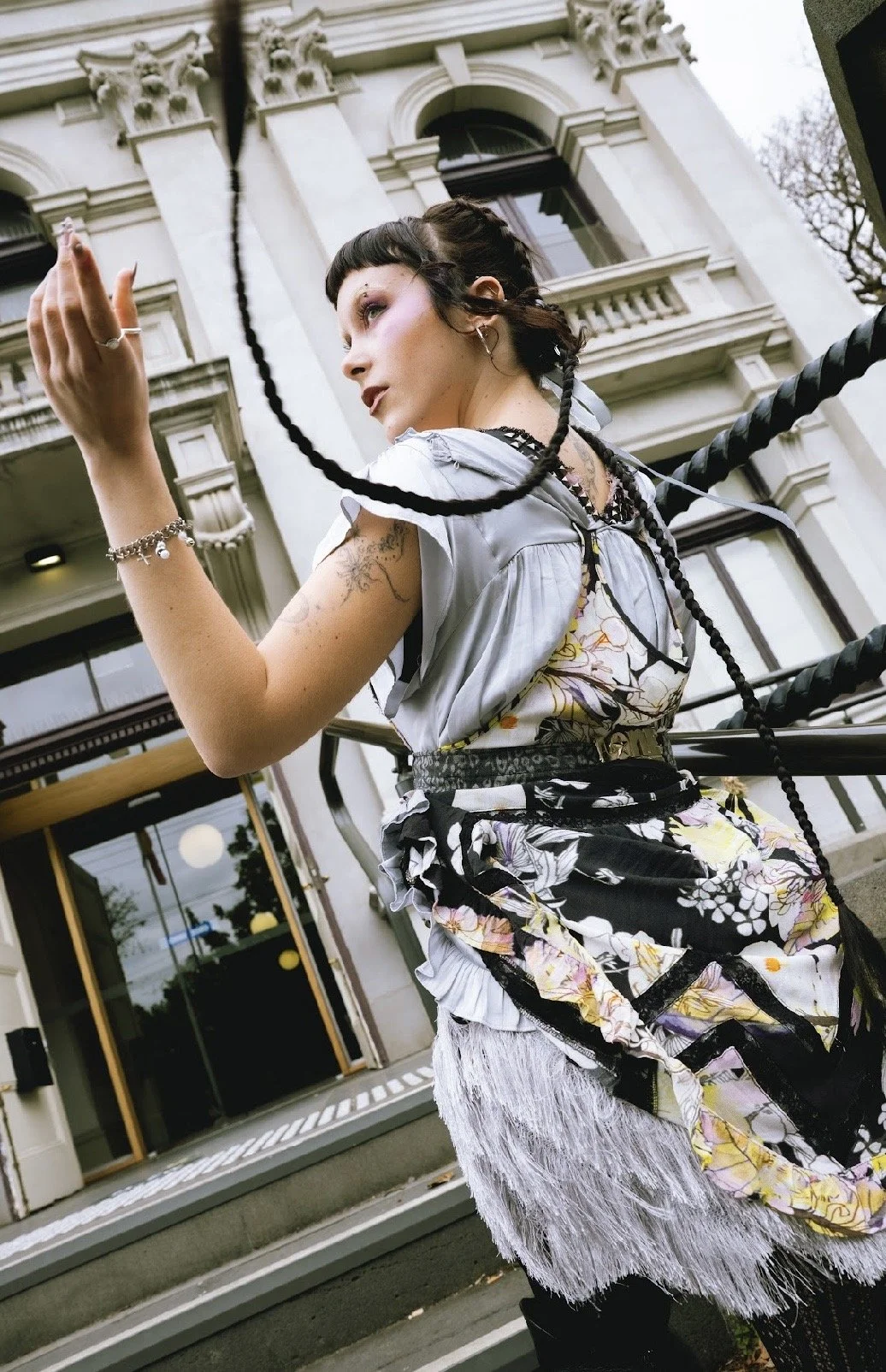 Helena’s latest collection is made entirely from upcycled fabrics, creating an aesthetic ode to the glory days of Tumblr fashion between 2016–2018. Her work is known for thoughtful, beautifully crafted and intricately detailed designs, with a strong emphasis on construction and finish.